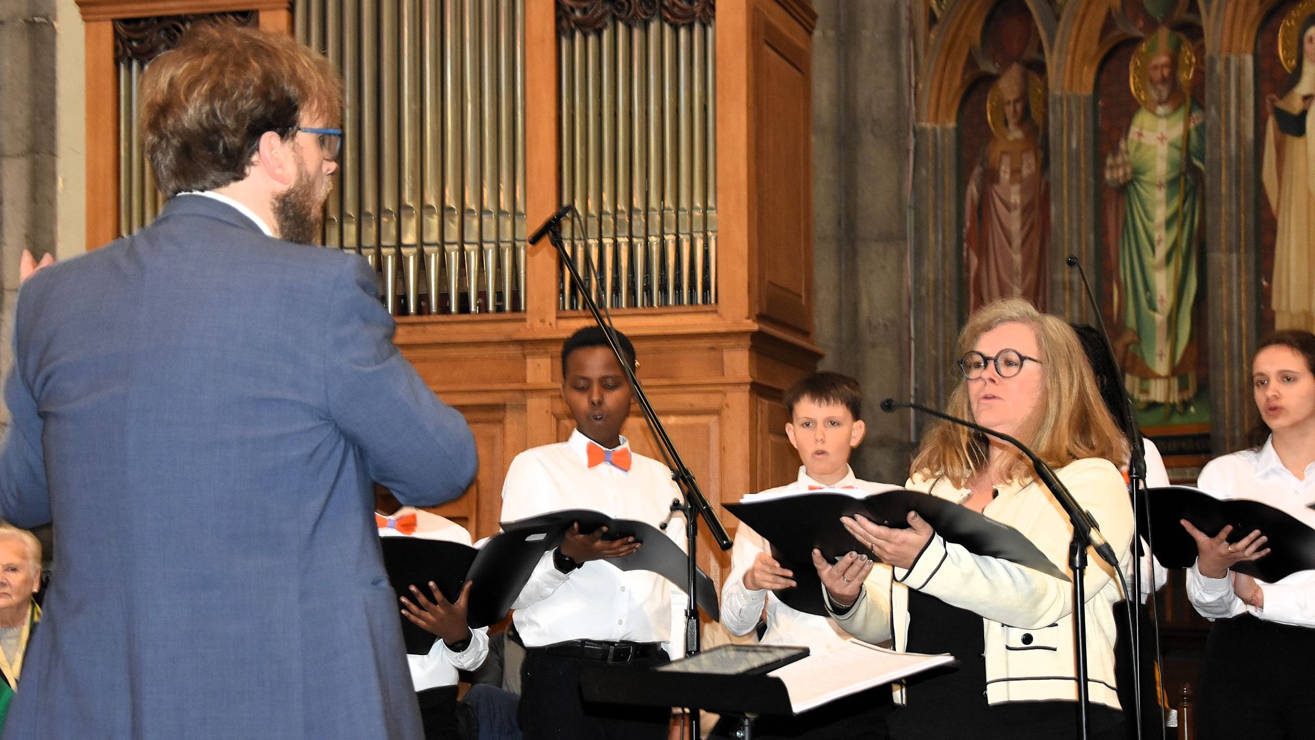 Ce matin de Pâques ont retenti sous les voûtes de la cathédrale les chants joyeux de la Maîtrise et de la chorale liturgique sous la direction d’Anthony Vigneron. Un Panis Angelicus tout en profondeur et en délicatesse avec Julie Bailly et nos jeunes choristes a particulièrement ému l’assemblée.